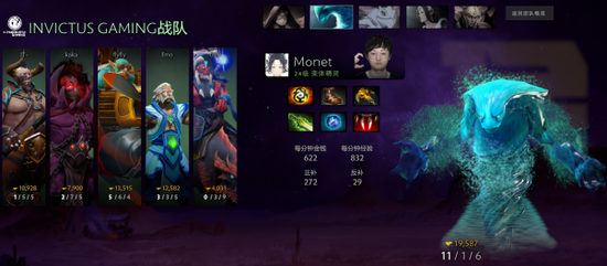 就在茶队高歌猛进的同时,IG却在与RNG的比赛中陷入了苦战。这个BO2的第一局,一方面是莫奈特的水人节奏完美——从头杀到尾就没停过,另一方面,Setsu也玩到了自己最擅长的Puck。新版本的Puck沉默带位移、F带扫射,打法系打物理都极有前途。团战中,IG的后排被水人Puck冲的支离破碎,RNG轻松取胜。不过在BO2的第二个回合,IG拿出了一套在MDL时期比较擅长的阵容。对线期,RNG多路崩盘,比赛仅耗时21分钟就告终。
