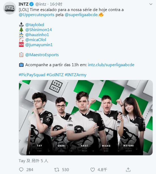 据中国台湾媒体newtalk报道,今日凌晨进行巴西《英雄联盟》联赛Superliga ABCDE上,巴西战队INTZ启用女辅助Mayumi。