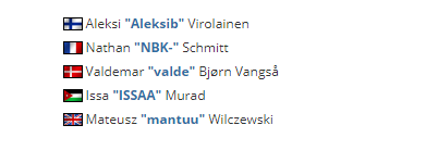 该阵容中大多数选手都在柏林Major之后被队伍放置到了不活跃名单,其中Vitality战队队长NBK-被shox取代;ENCE的指挥Aleksib被suNny取代;约旦选手ISSAA也是被HellRaisers下放替补。