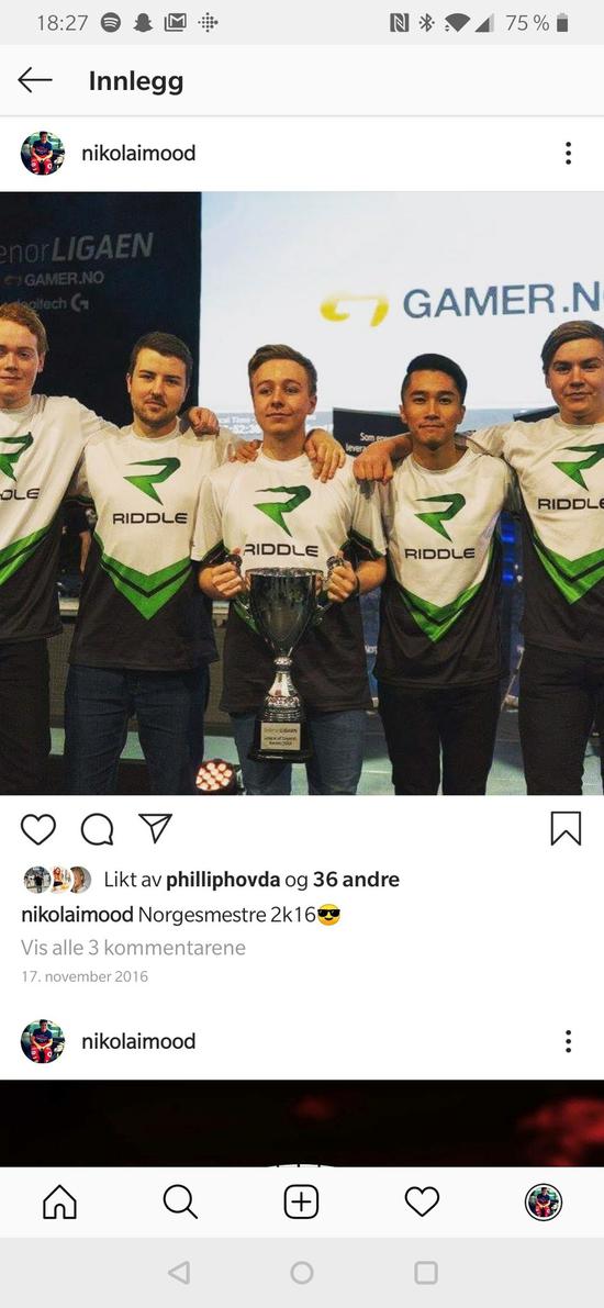 他从2013年开启职业生涯,曾效力于Cloud 9 Eclipse战队以及Giants Gaming战队,担任打野,今年5月~6月仍效力在挪威Fact Revolution战队。