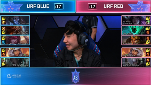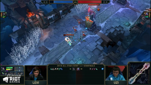 首个比赛是双人共玩模式,由两个选手分别操作键盘和鼠标共同完成比赛。Uzi和神超分为一组,ZZr和越南战神Levi牵手成功与Uzi共同在蓝色方出战,小天与若风的Tisaya组合则在红色方。比赛前期两位打野选手的配合堪称完美,蓝色方levi1996盲僧多次上演逆天操作帮助小炮屠戮赛场,Uzi与神超的纳尔也不遑多让,多次如来神掌发挥奇效,反观Tisaya的龙龟则被疯狂暴打,最终蓝色方完胜对手拿下胜利。