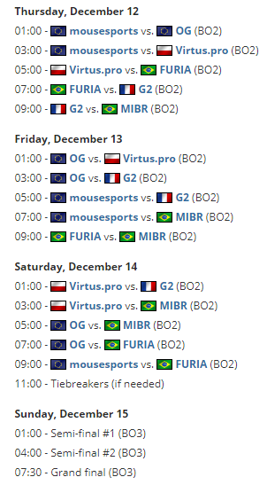 别墅杯 S5 将在 12 月 12 日至15 日每天的北京时间凌晨 1 点开始,前三天为小组赛阶段,周日将举行半决赛和总决赛。
