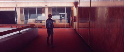 开启RTX光线追踪后仿佛整个世界都被点亮了,从上图可以观察到RTX光线追踪出众的反射效果。首先映入眼帘的便是女主角面前的玻璃反射效果,走廊、扶手、人物等等场景应有尽有地在镜面当中呈现。当玩家走得越近,人物细节层面的刻画也会越详细,而且镜中世界的画面会随着镜外的变化而变化,进一步加强真实感;右侧墙面细节也传递出了很多信息,红木与玻璃是两种完全不同的材质,而RTX光线追踪将这一点处理的恰到好处,红木反射效果虽模糊但也更加真实,进一步加强场景层次感。