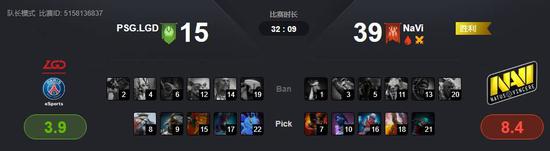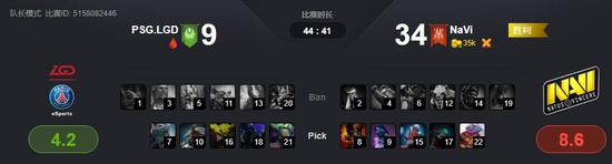 39分钟,Navi的重拳出击再度对PSG.LGD造成了致命伤,陈、孽主、亚巴顿阵亡后小小一个人难挡Navi五人,也无奈倒地。随后夜魇选择推进高地,剧毒守塔阵亡交出买活,但还是没能阻挡Navi破掉天辉两路高地。随着最后一波团战小小和孽主的倒地,PSG.LGD翻盘无望,在Navi再度站上己方高地后打出GG。