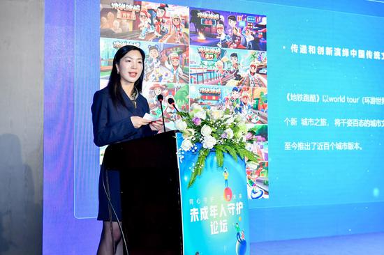 创梦天地科技有限公司高级副总裁严佩诗认为,当我们回归游戏本真,探讨游戏的意义,可以用“文化传承”、“精品创造”两个关键词进行诠释。严佩诗同时分享了创梦天地的未成年人保护尝试,包括建立了家长监控工程、未成年人投诉退费机制,率先加入了腾讯成长守护平台的未成年人守护生态等。