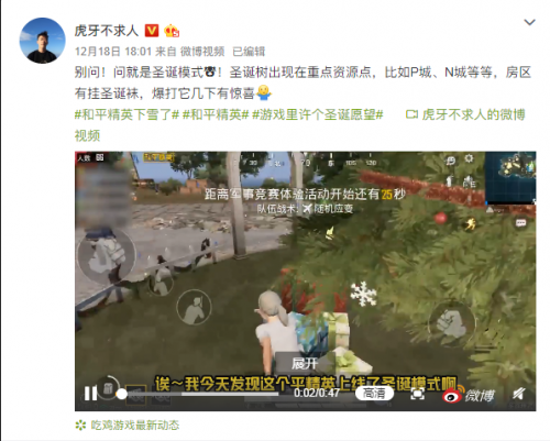 “叮叮当,叮叮当,铃儿响叮当.....”音乐声的响起,圣诞气息袭来,求哥也18日在微博里安利和平精英最新上线的圣诞模式。注意到,这个模式是18日上线的,上线当日求哥就开始摸索并安利。