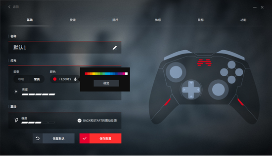 北通宙斯还配备了炫彩RGB灯,其灯效可自由调节,闪烁频率也可调,在自定义软件中开启“震动时闪烁”,灯光还可以根据游戏场景进行闪动。例如在玩玩极品飞车的时候,平整的公路上闪动不明显。但在颠簸的泥沙路开车的时候,灯光就会疯狂闪烁。再加上可插耳机,可以给玩家视觉+触觉+听觉的多维沉浸感享受。
