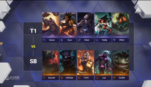首局SB选择进攻能力极强的前中期阵容,T1祭出铁桶阵主打中后期。前期T1发挥完美,不仅前十五分钟守住OnFleek疯狂进攻,更在野区反蹲拿下一血。接下来双方围绕地图资源发生争夺,T1利用出色的团战能力扩大领先。中后期眼看胜利天平逐渐往T1倾斜,SB终于在蓝色方野区抓住机会,凭借上中大招完美衔接,SB打出一波2换5加大龙直接逆转局势。接下来T1守高地连续失误,SB一鼓作气连斩T1数位大将后成功拿下首局。