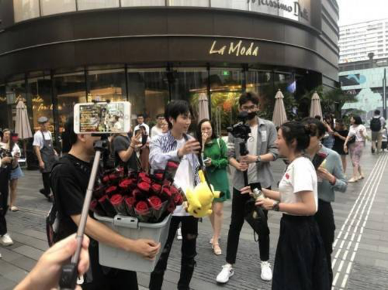 今年5月20日,孤影举办户外直播活动,挑战给520位美女送花。