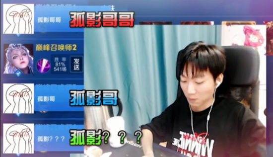 孤影想玩一会露娜就去打巅峰赛,当孤影选露娜后,有队友说自己要玩露娜,孤影先是傲娇的表示不会让,此时队友说:“给我吧,谢谢,我带飞。”孤影立刻把露娜让给队友。粉丝们问他为什么那么容易妥协,他回了一句“他谢谢都来了,兄弟。”