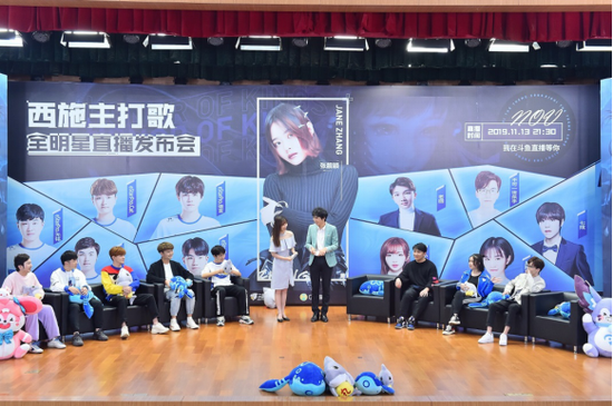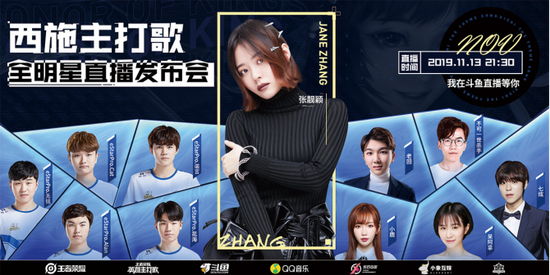 11月13日,由腾讯王者荣耀项目组发起,斗鱼、炫石互娱、小象互娱共同承办的《西施主打歌全明星直播发布会》在成都腾讯大楼举行。张靓颖、EstarPro战队成员、以及人气主播老回、不可一世杀手、七炫、小鹿、呆阿拿一同参与了此次斗鱼平台的直播活动。