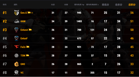 在第二场艾伦格地图的比赛中,开局航线的位置偏向于地图的西侧,对大部分战队的原始跳点都存在着一定的影响。在这一场的较量中,PCL赛区的三支战队发挥出色,斩获不少的淘汰积分和排名积分。在最后的“决赛圈”,战场上形成了VC战队、4AM战队和Gen.G战队“三足鼎立”的局势。由于位置的优势,Gen.G战队提早拉开枪线,拥有更好的“架枪”位置。在这种情况下,“腹背受敌”的4AM战队提前被淘汰出局,获得第三名。VC战队剩余的选手也只能遗恨离场。Gen.G战队再次获得比赛胜利,实现了“两连胜”!