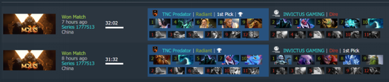 TNC在决赛日的第一个BO3中以秋风扫落叶之势将IG碾压出局。两局比赛,TNC都在BP阶段占据了较大的优势——第一把抢下亚巴顿和萨尔,给IG带来了很大的困扰;第二局一选Pom后拿黑鸟,算是给IG设下了圈套。而看到IG在最后一手顶着黑鸟选出的水人,不禁令人感慨,一切仿佛都在TNC的计算之内。