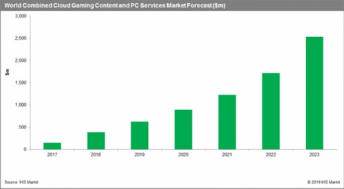 根据此前市场调查机构IHS Markit的报告,云游戏这一产业将在未来几年进一步增长:到2019年底,市场总规模会首次突破5亿美元,到2023年年底的时候将达到25亿美元。