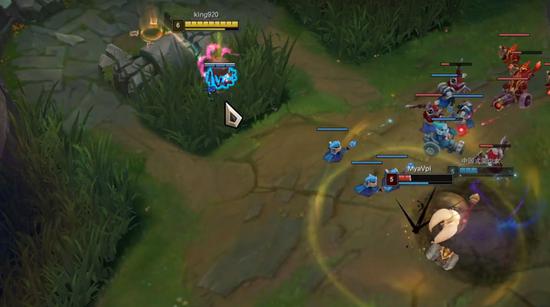 可以看到盲僧绕后进入草丛时波比并未有所察觉,依然上前对拼,随后盲僧摸眼出草支援,虽然空掉Q技能,但波比依然难逃一死。