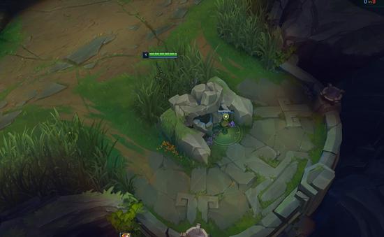 根据凹槽的形状和位置,以及草丛的角度和范围,可以推断出若凹槽中没有对方视野,并且兵线位置在小兵正常视野范围外的情况下,打野英雄可以卡视野偷偷绕进草丛埋伏,找机会发动突袭或反蹲。
