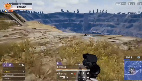 决赛圈来到矿山,BA_mingg一穿三淘汰Weibo后,场上仅剩三个队伍5人生存,BA剩余三人,Lstars和NewHappy都仅剩一只独狼,Lstars率先对NewHappy独狼出手,将其击倒后场上呈现三打一的局势,BA锁定独狼位置后丢雷将其炸残后三人前压,轻松吃鸡!