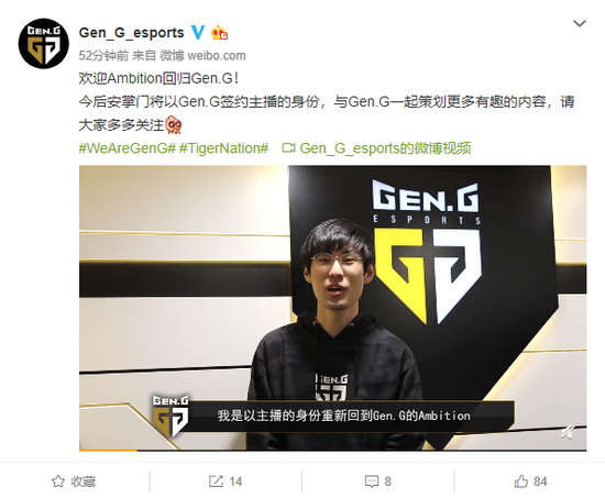 随后GEN.G发布了安掌门回归的视频,着重强调了安掌门的主播身份这一点。