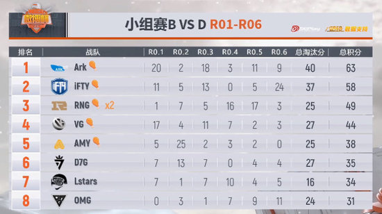 决赛圈场上仅剩4队伍9生存,VG两人,iFTY两人,Ark满编,FTG仅剩一个独狼,独狼被Ark发现带走后蓝圈收缩,此时VG抓住时机率先出击打倒Ark一人,iFTY闻讯也加入战斗,混战中三方互有减员,最终VG成功吃鸡。