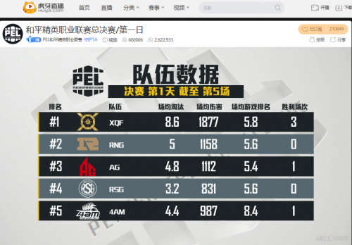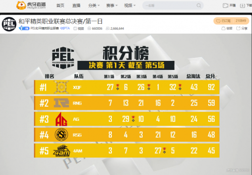 12月6日,虎牙PEL和平精英职业联赛的总决赛巅峰对决正式开战。首个比赛日虎牙战队延续出色发挥,五局比赛豪取四个蛋糕统治决赛舞台,其中XQF更是王者无敌,单日三个蛋糕占据积分榜首。另外一边RNG虽然没有吃到蛋糕,但凭借出色的正面能力和严谨战术执行,以59分位列榜眼。4AM再次天谴圈附体,前三局极限圈形再次魔鬼开局,好在调整及时的他们第四局抓住机会吃到蛋糕,最终成功杀进积分前五。