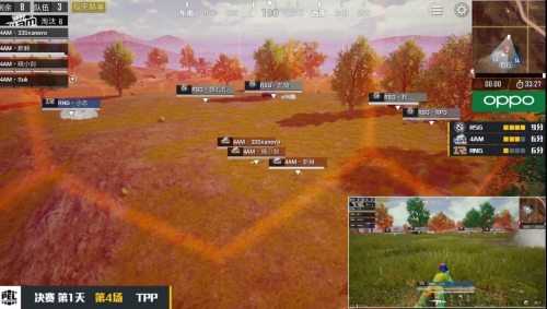 4AM又是熟悉的炼狱级别开局,连续三局天谴圈根本无法打出正面火力,虽然硬是凭借枪法收获淘汰分,但积分形式岌岌可危。好在第四局圈运有所眷顾,前期半山腰的房型助他们顺利度过转移阶段,凭借远程火力他们更是将多支战队驱赶至圈形强侧成功制造出北部弱侧。决赛阶段他们终于选择果断出击,惨编情况下先是配合RSG瞬间团灭FPX,然后决战在没有任何掩体的情况下凭借枪法正面击败RSG吃到蛋糕。