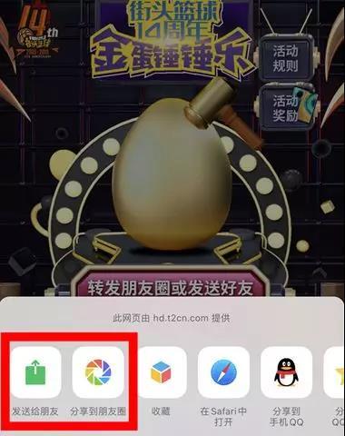 好友打开分享页面即可助力砸蛋,但必须满足以下两点:关注街头篮球官方公众号,且必须点击领取金蛋验证手机。关注公众号且有自己的蛋才能帮人砸蛋)