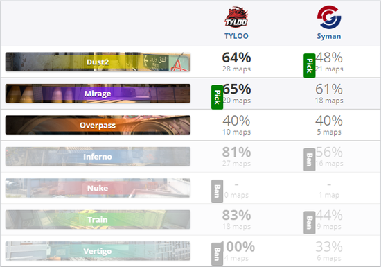 TYLOO vs Syman(Dust2 1-16;Mirage 14-16;Overpass)