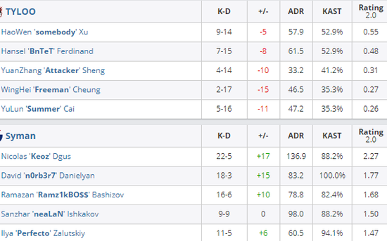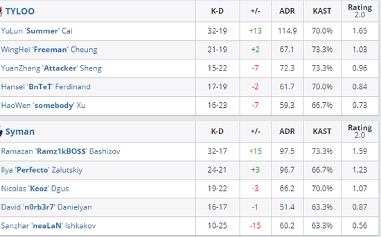 虽然TYLOO通过一系列快攻多次成功突破得分,但之后Syman针对中路的强控也TYLOO难以适从。在地图控制占据上风后,Syman游刃有余的第二时间一波流,轻松就占据了包点。连丢数个优势残局后,TYLOO最终输掉了第二张地图掉入败者组。