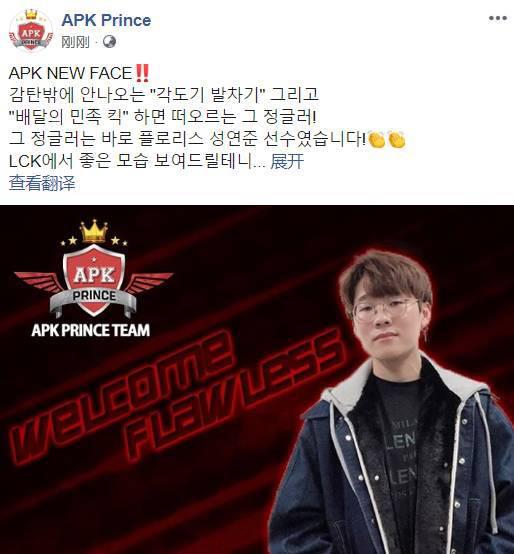 LCK新军APK更新脸书,公布新打野选手为Flawless。