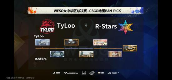 WESG2019中决赛来到第二日进入淘汰赛,焦点战TyLoo对阵R-Stars,双方地图BP结果如下: