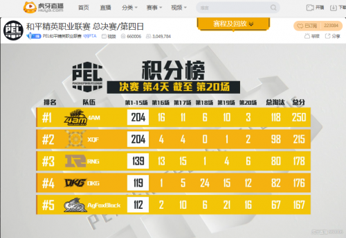 12月13日,虎牙PEL和平精英职业联赛的总决赛第二轮正式开战。领头羊4AM继续高歌猛进,虽然没有像前一个比赛日一样所向披靡,但凭借强大正面火力继续扩大领先优势。另一边XQF表现低迷,连续的极限圈形让他们接连早早淘汰,已经拉开分差的他们急需一场蛋糕找回感觉。首轮表现糟糕的ELG反而打出气势,凭借精准雷技他们在沙漠图中势如破竹,最终完成十三个淘汰的逆天蛋糕壮举。