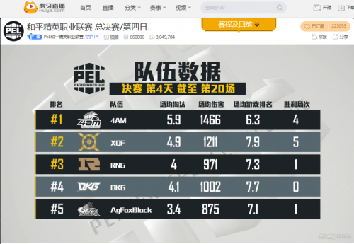 随着赛程逐渐深入,大部分战队已经适应新赛制,纷纷找到符合各自战队特色的战术打法。连续十五场的大战下来让战队间知根知底,一言不合就正面搏杀的场面层出不穷。4AM无疑是全新赛制的宠儿,擅长正面打法的他们在决赛中如鱼得水,火力全开的他们不仅反超XQF占据积分榜第一,更是在队伍数据上全面领先,除了战神晓小剑,另外三名选手全部挤进得分榜前五。