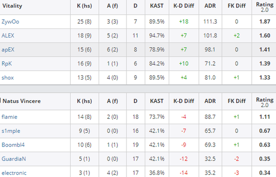 纵然勉强攻入包点,s1mple与电子哥两位最为稳定的选手也出现罕见的失误。NaVi五人几乎成为ZywOo的狙击训练机器人,想要避开却总能相遇。最终Vitality以16-3的比分扳回一城。