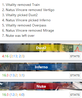 NaVi vs Vitality 1-2(Dust2 16-4;Inferno 3-16;Nuke 3-16)