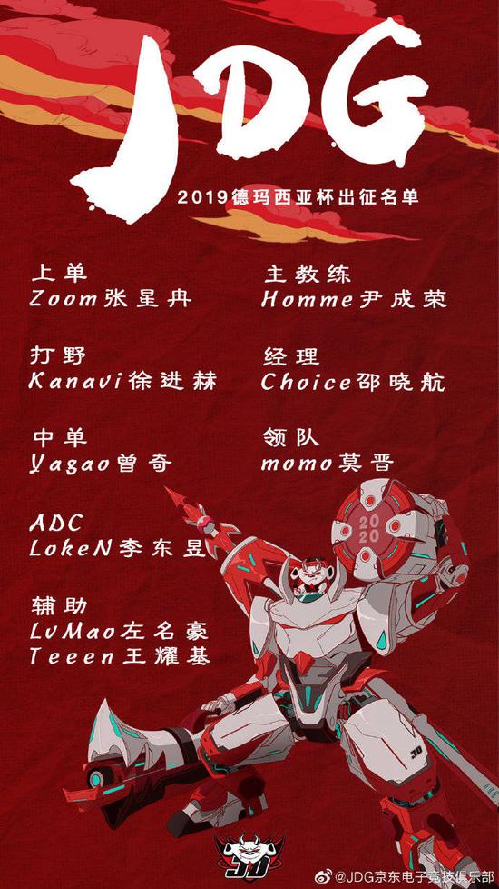 【2019德玛西亚杯JDG京东电子竞技俱乐部大名单】