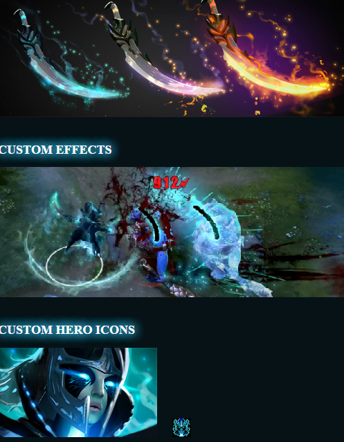 此外还有特殊模型特效,尤其是大招,恩赐解脱会在被打击者的后面产生一个蓝色粒子的幻象,然后会飘散消失,带有特殊的溅血效果,被幻影刺客击杀后将在战场上留下“诡魅奇观”。 PA杀完敌人后会在地上留下一把匕首,点击匕首可以看到死去的敌方英雄。