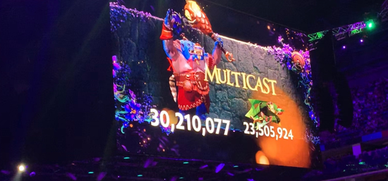 TI9至宝投票终局,随着屏幕上“多重施法”倍率达到4倍,蓝胖领先风行700万票夺魁。就在至宝投票结果正式出场的前一场,LGD在迎战VG时选出了蓝胖来承担三号位的职责,而后者也是一路经济全场领跑,关键时刻还有4X施法直接击杀对方1,2号位的操作,蓝胖是全场的节奏点——天时地利人和。
