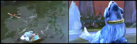 在水中的时候会游泳,冰女开大的时候小狼也会跟着叫,甚至包含幼狼聊天表情。