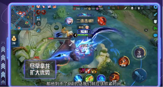 1.掌握主动权,拉开优势。在拿下小龙全员四级的情况下,己方是占了很大的优势的,通过观察双方的阵容来决定主抓哪一条路。比如己方的射手起来了,那么敌方没有什么英雄可以针对他,因此优先选择跟敌方射手对线。