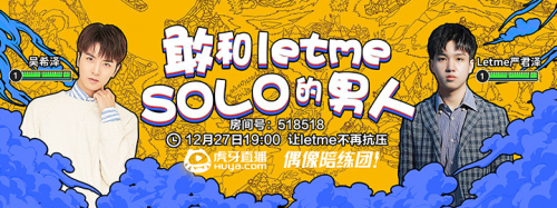 本次新一期节目邀请到了前RNG战队上单选手Letme严君泽作为我们的陪练主播,大家对君泽一定不会陌生,作为前2018年MSI冠军上单“众生平等”抗压之王,更是帮助中国队在亚运会打败韩国队成功夺冠立下汗马功劳的功勋老将。虽然君泽最终离开赛场选择退役了但他依然没有放弃对电竞的热爱,没有选择离开电竞圈,而是加盟虎牙成为一名全职主播。凭借过人的操作实力和温文尔雅的直播风格征服大量粉丝,更是完成由了职业选手向百万人气主播的华丽变身。但最近我们的Letme在排位的游戏中过于欢乐,导致自己一直被卡在白金段位,把把被对方针对的只能塔下抗压,直播娱乐效果更是十分有趣,而近日Letme却收到了一份神秘的挑战信,12月27日有一位神秘人将向他发起1V1solo挑战。