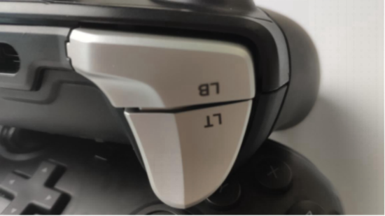 肩键方面,Switch Pro手柄的肩键同样也是手感偏软,扳机也不是线性扳机。北通宙斯手柄肩键采用的是依然是电竞级轻触开关,并使用了线性扳机。