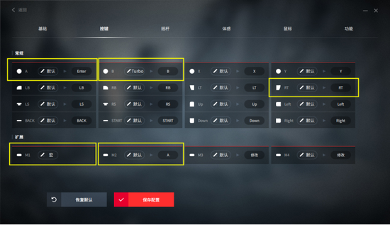 背键方面,北通宙斯拥有Switch Pro手柄所没有的的4背键。这4个键可以通过手柄的配套软件,进行调整。可以映射所有手柄上的传统按键,并且可以设置连发与宏功能。