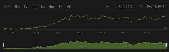 根据门户网站Steam Charts提供的数据,CSGO在12月的平均线上玩家达到45.5万人。这一数据为整个游戏生命周期的巅峰。
