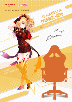 1月11日,AKPLAYER阿卡丁X战斗吧歌姬! 首款联名电竞椅即将在阿卡丁天猫旗舰店上线,届时请关注AKPLAYER阿卡丁天猫旗舰店,及时一睹新品华丽外形!