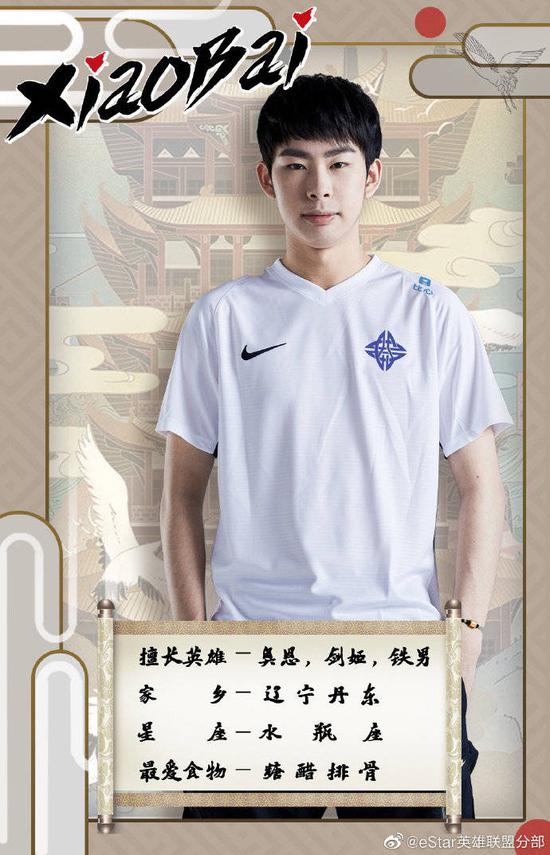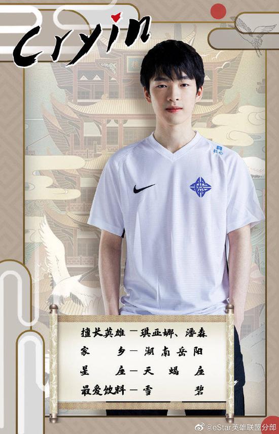 eStar英雄联盟分部发布人员公告,原RYL战队上单Xiaobai携手中单选手Cryin正式加盟。