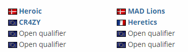 近日,DreamHack赛事方宣布了即将举行的DH公开赛莱比锡站预选赛直邀队伍名单。本次预选共有三个晋级名额,资格赛将于1月12日进行。可以看到在欧洲区的受邀名单中,目前丹麦战队Heroic、Heretics以及ottoNd率领的CR4ZY都是强有力的竞争对手。
