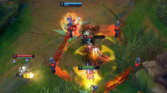 光辉女郎拉克丝和莫甘娜的组合也同样是利用了游戏中CD短的特点,这两个英雄的Q技能在游戏中对敌方造成较长时间的禁锢效果。在“无限乱斗”中就更加考验对方玩家的走位,因为在极短的技能CD下,几乎刚刚结束禁锢效果,对面新的Q技能已经快准备好了,又要准备开始走位躲新的技能。而光辉和莫甘娜的组合弥补了技能上本来就很短的时间空挡,可以做到技能衔接时间无缝隙,通过不断的禁锢效果为队友创造输出空间。