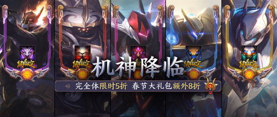 除了上述三个活动之外,王国机神皮肤也出了限时半价销售活动,购买新春2020礼包享五折优惠。