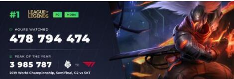LOL在电竞年度累计观看的时间是4.78亿小时,比第二名的电子竞技比赛(CS:GO)还多出68%的小时。并且在2019年LOL整个游戏都取得了非常大的成功,其中包括拳头改进各个赛区的赛制、规则,同时开发人员想要确保每个赛区在世界各个角落都不会太弱或太强。其中最为突出赛区就属LEC、LCS、LPL和LCK了,这次非常难达成的观看人数记录是由来自LCK的SKT和来自LEC的G2在半决赛中诞生的。