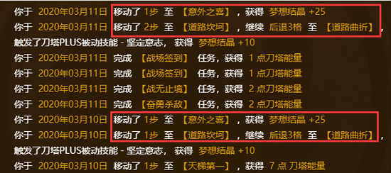 当然,获取奖励之路是真的曲折,体验各种大喜大悲:意外之喜连续掷“1”,→天梯第一→道路坎坷→道路曲折;继续掷1+2,→意外之喜→道路坎坷→道路曲折→意外之喜……确实练出了一颗大心脏!如果连续踩到“结晶减少”,也是蛮亏的,PLUS的好处就在此时体现,每日一次“结晶减少”变“结晶增加”,稳得不行;而触发这次事件后,也就差不多该停手,明天,再赚也不迟!